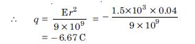 A conducting sphere of radius 10 cm has an unknown charge. If the electric field 20 cm from the centre of the sphere is 1.5 × 103 NC–1 and points radially inward, what is the net charge on the sphere ?