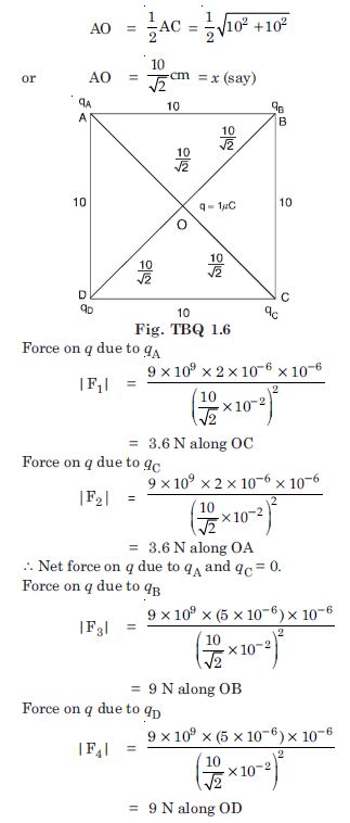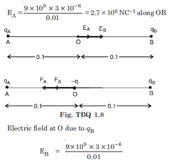 Given q A = 3 C = 3 × 10–6 C qB = – 3 C = – 3 × 10–6 C r = 20 cm = 0.2 m Electric field at O due to qA