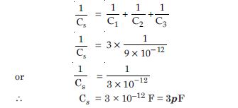 Here C1 = 2pF; C2 = 3pF; C3 = 4pF ; V = 100 volt