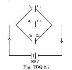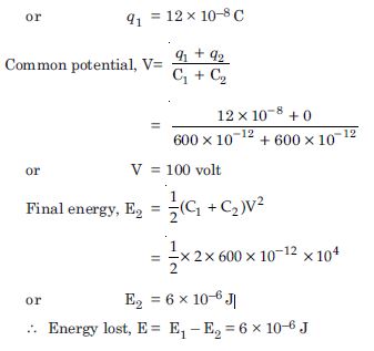 Therefore, q1 = C1 V = 2 × 10–12 × 100