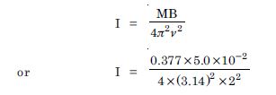 A circular coil of 16 turns and radius 10 cm, carrying a current of 0.75 A rests with its plane normal to an external field of magnitude 5.0 ×10–2 T. The coil is free to turn about an axis in its plane perpendicular to the field direction. When the coil is turned slightly and released, it oscillates about its stable equilibrium with frequency of 2.0 s–1. What is the moment of inertia of the coil about its axis of rotation ?