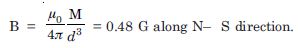 = 0.96 × 10–4 T = 0.96 G along S–N direction