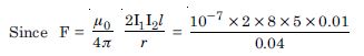 Given l = 3.0 cm = 3 × 10 –2 m, I = 10 A