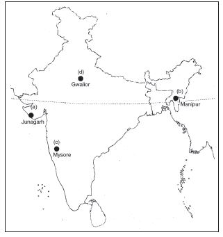 Take a current political map of India (showing outlines of states) and mark the location of the following Princely States.