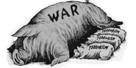 Read the Cartoon below and write a short note in favour or against the connection between war and terrorism depicted in this cartoon.